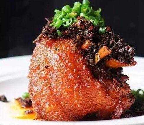 2.趁熱取出,將糖色均勻抹在皮上,高溫油鍋炸熟,再放入一鍋鹽水。