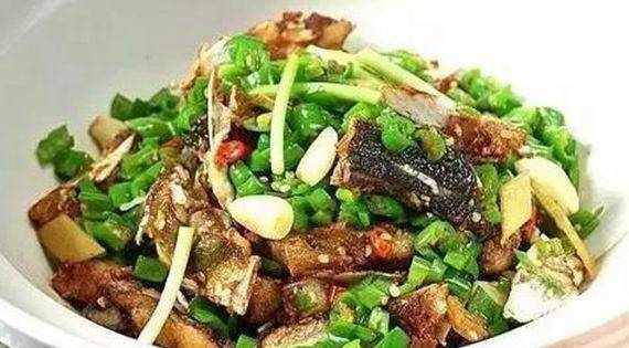 做法1、將魚頭洗凈,切成小塊。醃入味後,撒上一層幹粉,入油鍋炸至金黃色,撈出瀝油待用。