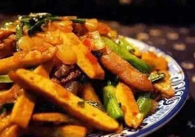 4、然後加入香幹翻炒均勻;
