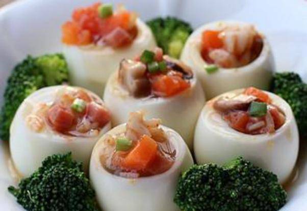 6.雞蛋去皮,對半切開