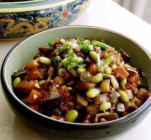 配料表:茄子、毛豆、肉碎、蔥、薑、蒜、油、鹽、糖、料酒、黑醬油、味噌、蠔油;