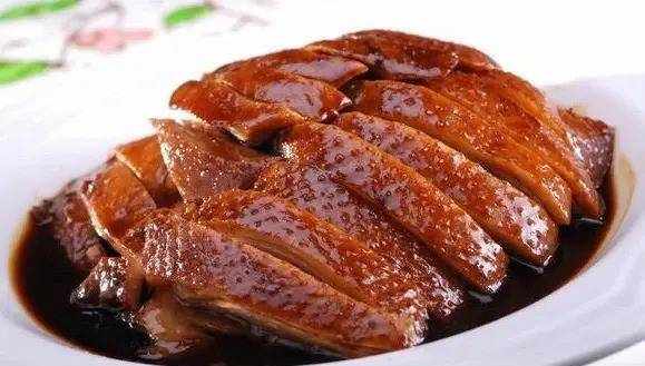 2、鍋內倒入清水,放入白鴨,加入薑、蔥、桂皮、八角、料酒、醬油、糖燒開。減少熱量以煮沸。鴨子煮熟後,把火調到中火,加入糖煮。用勺子舀湯澆在鴨身上,更入味。濃稠後,讓湯冷卻。