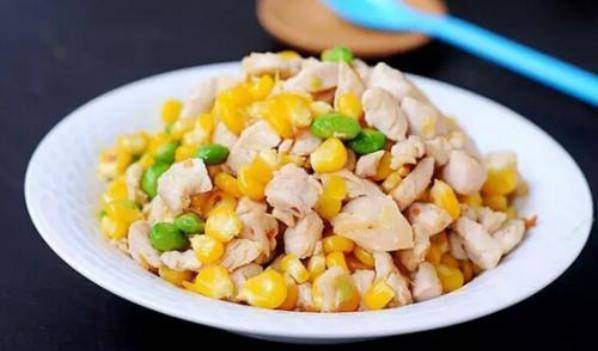 材料:山藥250克,玉米150克,雞胸肉250克,豆瓣醬1勺,白糖少許,鹽少許