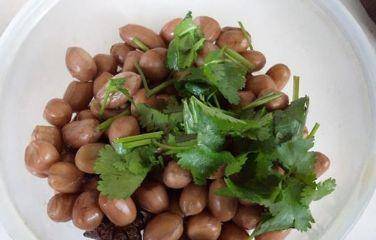 配料:花生500克,香油適量,鹽適量,香醋適量,胡椒粉適量,茴香適量,香菜適量,特制適量鮮醬油。