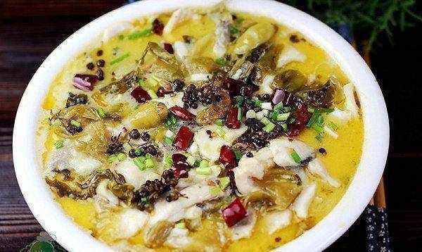 10.放入酸菜翻炒,加入少許白醋稍微翻炒。加入適量的開水、魚頭和魚骨,大火煮熟,根據咸淡加入適量的鹽。煮約5分鐘,取出魚頭、魚骨和酸菜,盛入盤中。