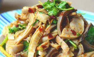 1、鴨腸用鹽和醋洗凈,用水沖洗三四次後切成十公分左右的塊;