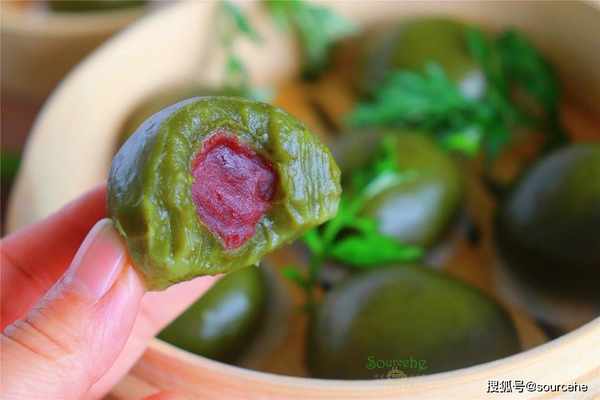 【sourcehe溫馨小貼士】1.用相同的方法,可以換成不同的餡料的青團,如黑芝麻口味青團、花生醬口味青團、蓮蓉口味青團。2.青團的大小建議在60至80克,太大的青團比較難蒸熟。2.糯米粉和粘米粉的比例為1:1,如果糯米粉太大,青團蒸熟之後會塌陷。3.焯水艾葉的時候記住添加2種食材,小蘇打和生薑,小蘇打保存艾葉的翠綠,生薑減少苦味,增加香味。