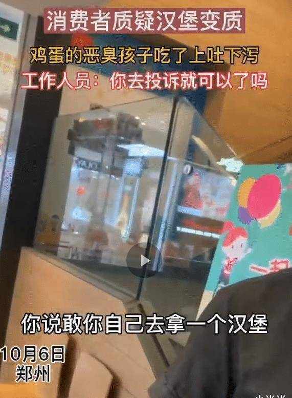10月6日,鄭州的一孩子吃瞭麥當勞漢堡上吐下瀉,而且還有雞蛋的惡臭味道。自己的孩子因為吃瞭漢堡身體出現瞭問題,所以作為傢長自然就會討說法,所以傢長就找到瞭店裡面的負責人,這是兩人的對話,當時還被用視頻的方式給拍下來瞭,也引起瞭網友的熱議。