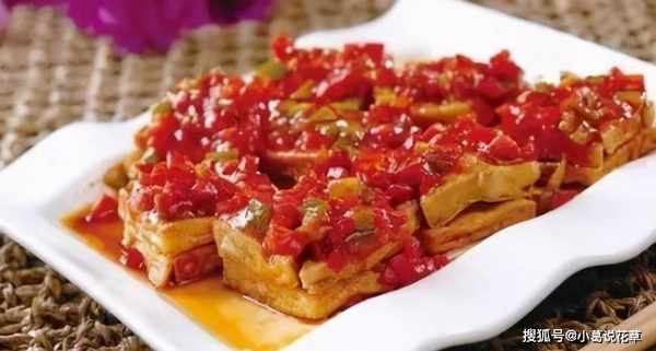 2.把鹵幹整齊的鋪在梅子醬上面,把剁好的辣椒放在鹵幹上蒸10分鐘。3.將洋蔥油加熱至80%的熱量,然後倒在熱菜上。