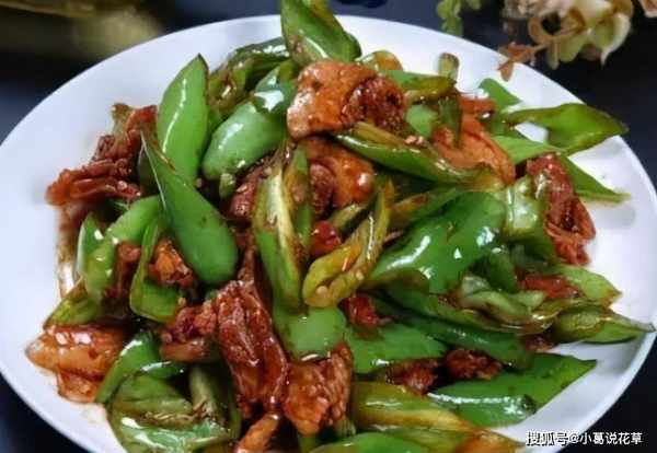 2、炒青椒:鍋內留30g底油,油溫40%熱時,加入蔥絲和佈丁,炒香。加入切碎的青椒和紅椒以及2克鹽。用小火翻炒至生。加入炸好的肉絲。加味精2克、生抽10克調味。玉米粉用水淀粉勾芡,出鍋裝盤。