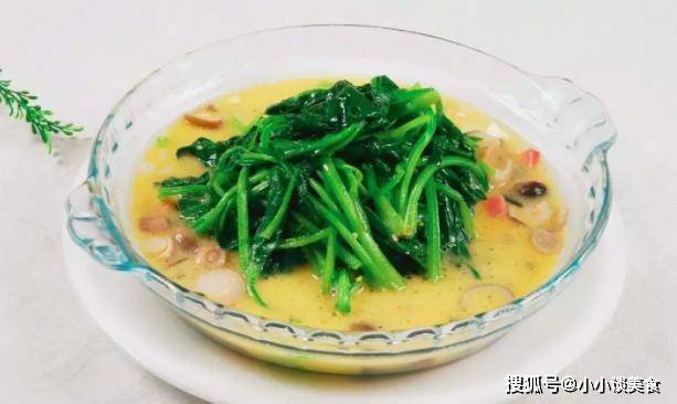 材料:菠菜1把,蜜餞雞蛋1個,咸蛋1個,薑3片,雞高湯100毫升,白胡椒粉少許,鹽少許。