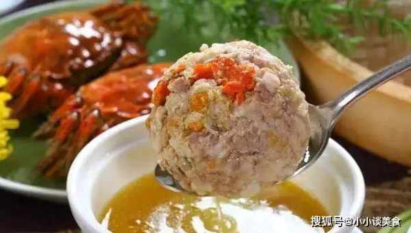 原料:五花肉、荸薺、蟹黃、鹽、雞精、花椒、薑、蒜、湯。