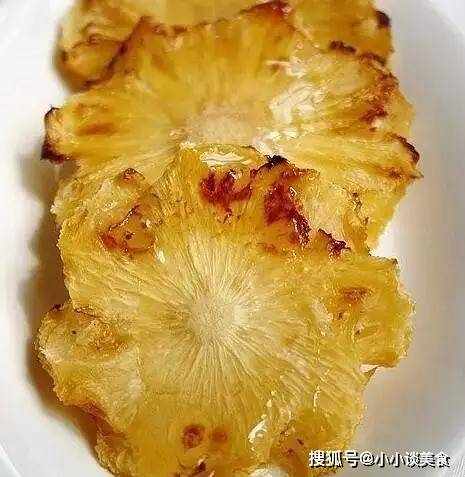 烤菠蘿味道更甜,質地也不同。松軟香脆,淋上蜂蜜,香甜可口。