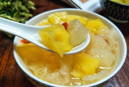 2、大火燒開後加入蓮子;3、小火煮60分鐘,加入冰糖、菠蘿塊、枸杞;