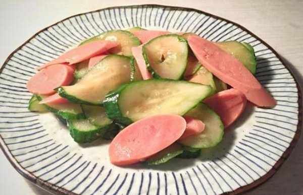 2.燒熱平底鍋,倒入油。當油熱時,加入黃瓜並攪拌均勻。加入少許鹽和糖拌勻。