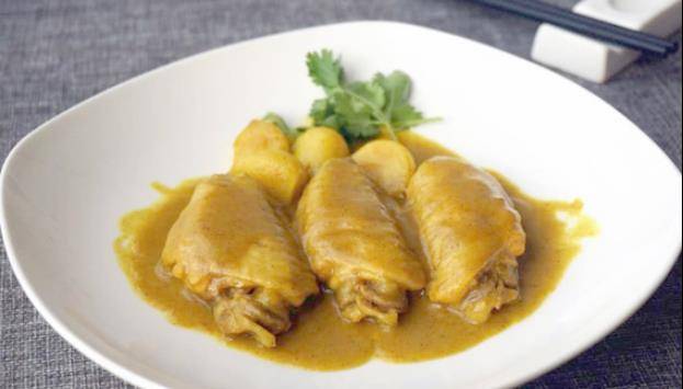 材料:雞翅、油、咖喱油、鹽、料酒、蔥、薑、椰漿