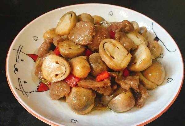 原料:牛肉、香菇、薑蒜、紅辣椒、醬油、糖、小蘇打、油、鹽、蠔油