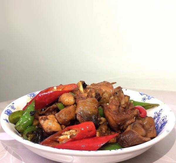 1、雞肉1.5-2斤就夠瞭。推薦使用真雞或三黃雞,洗凈切大塊,辣椒洗凈,備好蔥、薑、蒜、香菇;