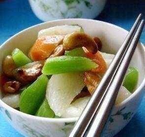 做法:1、芹菜洗凈,切成小塊,用開水焯一下,撈出晾涼,泡椒剁成細末;香菇泡軟,洗凈,去蒂撕成小塊。2.將精鹽、醬油、米醋、糖、料酒、味精和高湯混合調成醬汁。