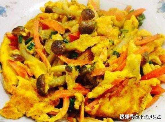 原料:雞蛋3個、各種鮮蘑菇150克、胡蘿卜半根、大蔥一把;