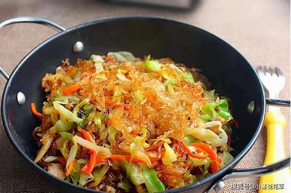 6、加入面條,開小火,用筷子不斷攪拌。3分鐘左右。(很多人質疑這一步,我想說我也練過先放白菜再放面條,這樣炸出來的面條不夠幹,我的版本是先放面條再放面條。)卷心菜.好吃幹的。但首先你需要一個防滑鍋。否則我勸你不要嘗試)