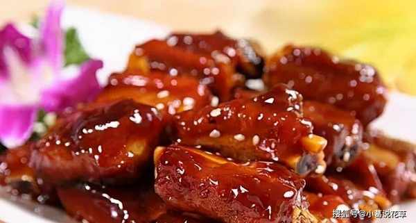 鍋內放底油,下排骨,炸至排骨表皮變黃,倒入醬汁繼續攪拌至湯汁收幹,均勻覆蓋排骨甜味。服務