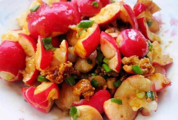 材料:櫻桃蘿卜300克,蒜5瓣,醬油2勺,醋4勺,食鹽1/2勺,白糖1/2勺,辣椒油1勺,花生粉1勺。