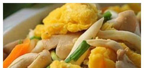 原料:雞蛋、貝類蘑菇、小蔥、胡椒粉、胡蘿卜、鹽、油。
