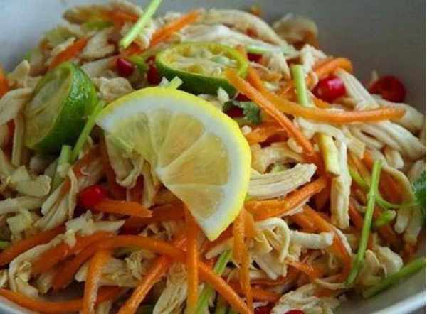 原料:雞胸肉200克;1/4個洋蔥;0.5根胡蘿卜;黃瓜1條,黑胡椒醬2湯匙;1湯匙料酒;1茶匙幹淀粉;1湯匙生抽;黑胡椒適量