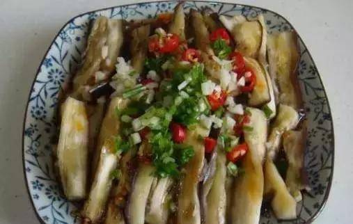 材料:長茄子2個,紅辣椒1個,蔥1個,蒜泥1湯匙,鮮醬油2湯匙,香油2湯匙,醋1湯匙。