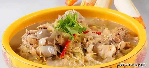 3、鍋內加油,爆香小蔥、薑片,加入酸菜不斷翻炒,然後加入適量的水燒開。4.加入羊肉片,燒開後去沫改用小火煮至羊肉變軟,撒上鹽和香菜粉。