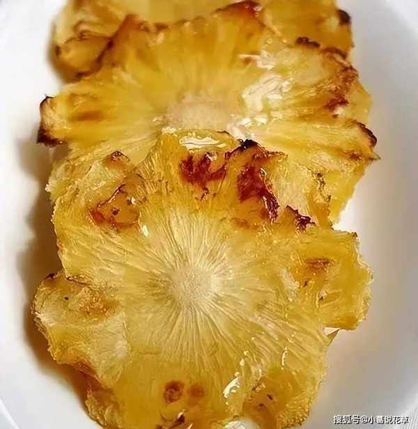烤菠蘿味道更甜,質地也不同。淋上蜂蜜,松軟香脆,香甜可口。
