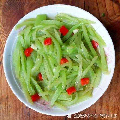 食材:萵筍300克,紅辣椒2個,蒜4瓣。