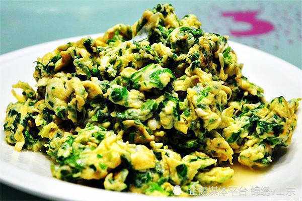 食材:薺薺菜適量、雞蛋3個、蔥花少許、鹽一勺。