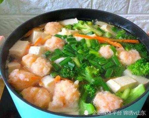 4、煮開後放入嫩豆腐煮一分鐘,再擠入蝦滑,煮至蝦滑浮起來,加入食鹽調味,淋入一點點水淀粉勾芡,煮熟後撒上蔥花,即可出鍋裝盤開吃。