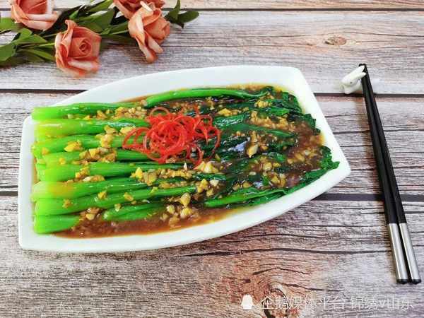 【食材】:菜心 適量、蠔油 2勺、醬油 1勺、白糖 少許、大蒜 5瓣、鹽 1小勺、淀粉 1小勺