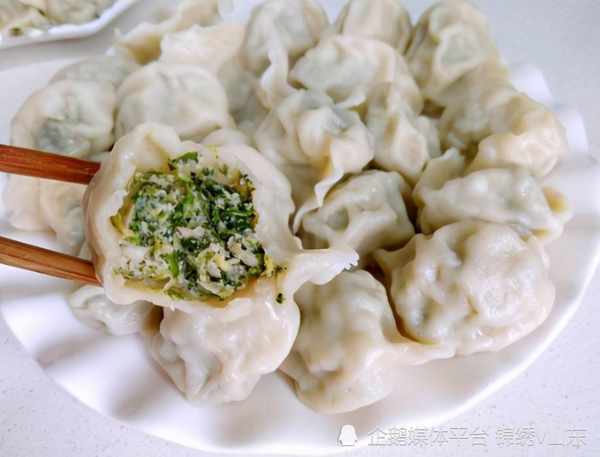 6.最後再加入薺菜,攪勻即可,薺菜豬肉餃子餡就調好瞭,就可以包餃子瞭。