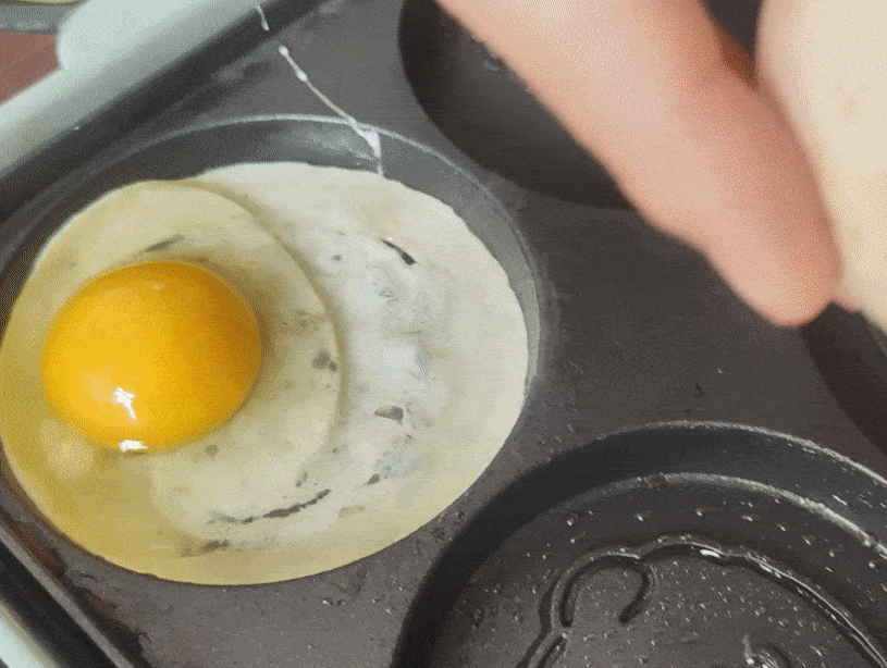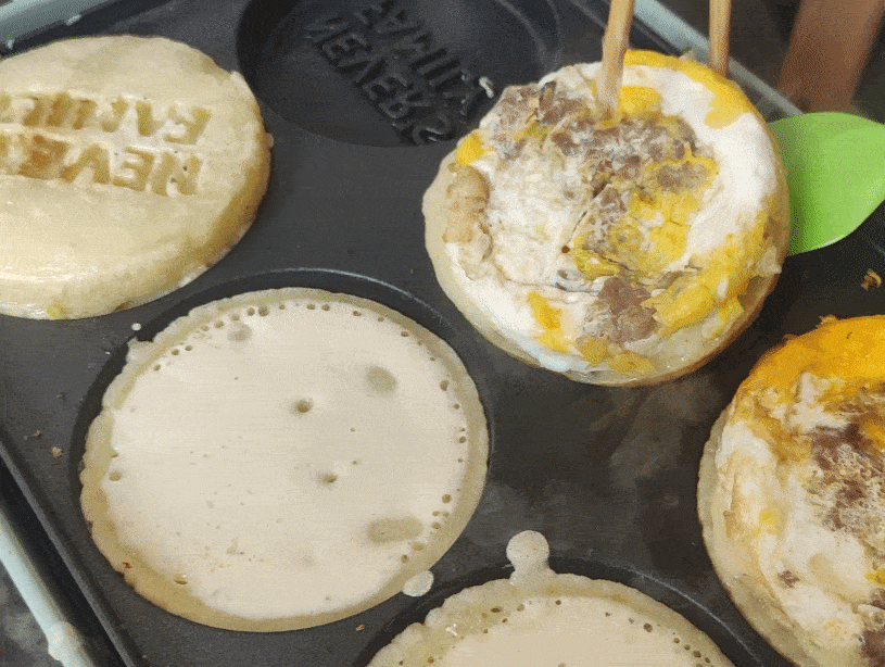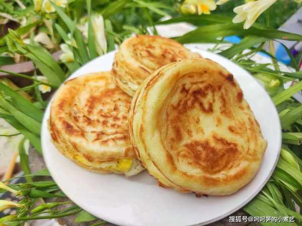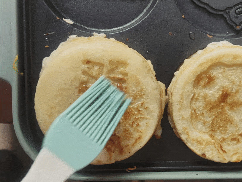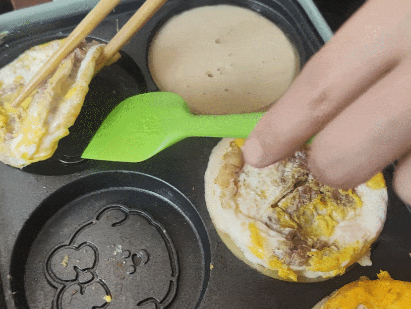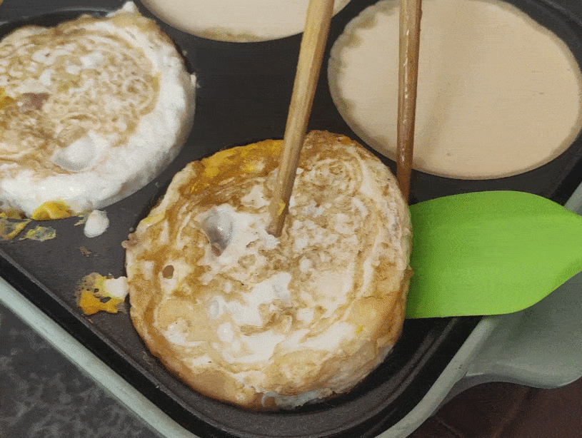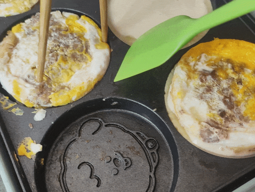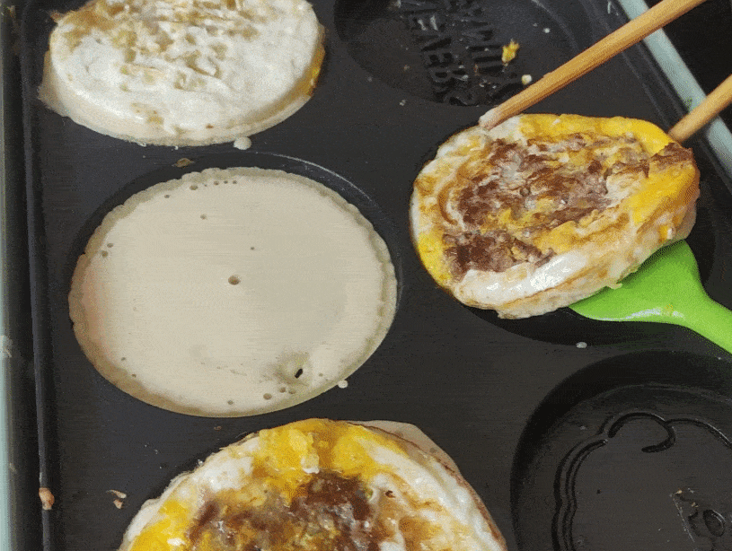 當兩面都有面糊包裹重疊在一起的時候,空出的鍋體就可以繼續進行下一批次的蛋餅制作啦。