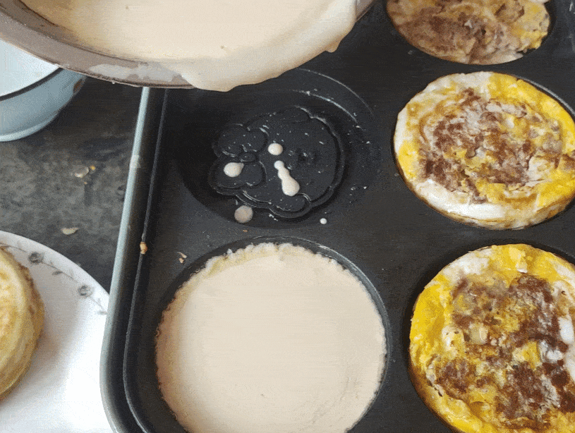 另一個鍋體刷油,再次倒入面糊。