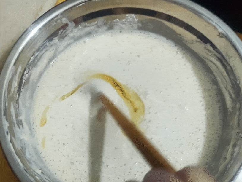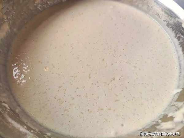 發過的面糊表面很多氣孔,稍微攪拌下排個氣。