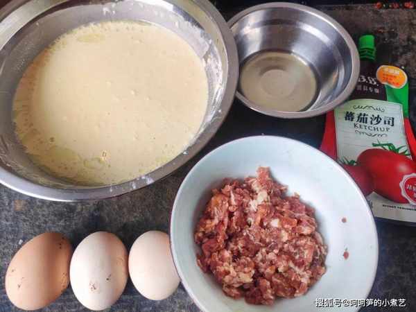 內餡:肉末、雞蛋、鹽、糖、生抽、蔥薑水