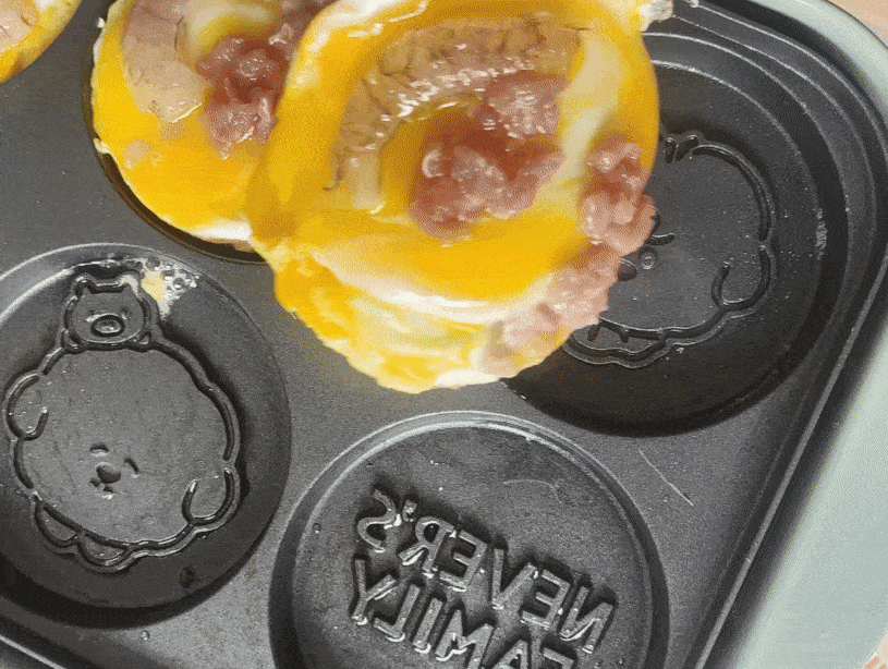 雞蛋肉餅也要註意翻面,受熱均勻熟的快一些,也防止煎焦。