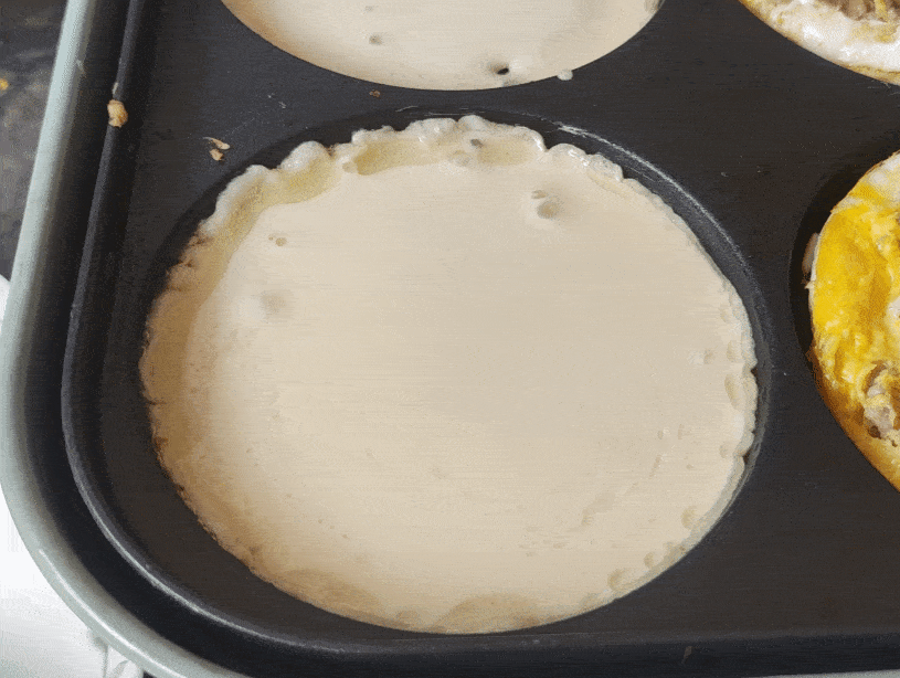 同樣的面糊底面稍稍凝固,表面有小氣泡。