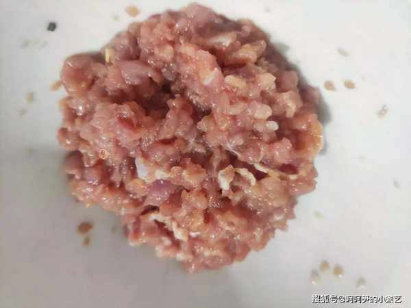 肉末根據口味加鹽、糖、生抽、蔥薑水調味。