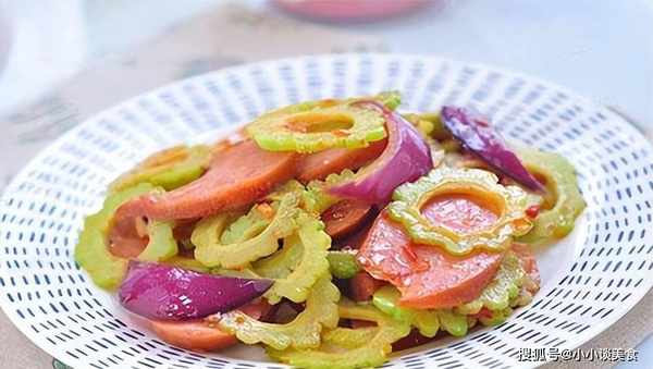材料:香腸20克,洋蔥10克,苦瓜1條,油適量,蒜蓉適量,蒜蓉辣椒醬適量,蠔油適量