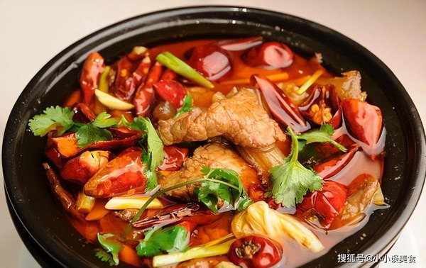 9.加入焯過水的筍片、香菇、胡蘿卜和青椒繼續翻炒均勻即可食用。撒上蔥花,就可以在大傢面前烤出魚腥味、色香味俱全的拉肉瞭。