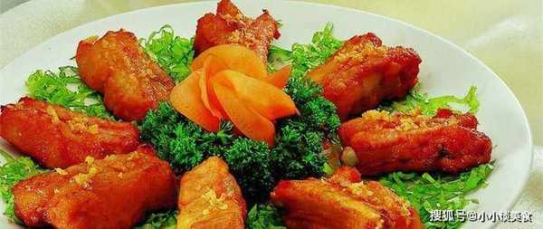 5、鍋中放入300克色拉油,加熱至70%,將排骨炸至金黃,撈出,放入漏勺控油,裝盤。