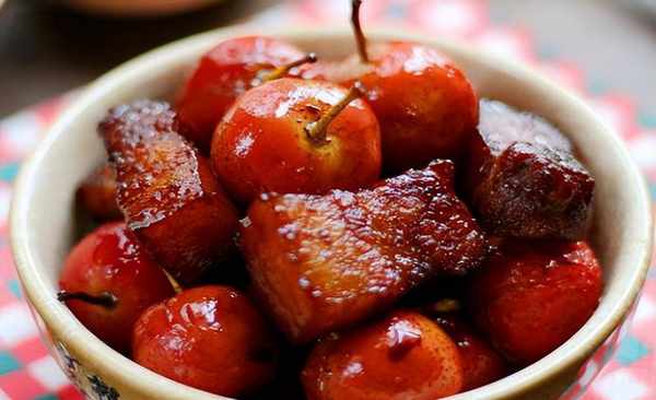 9、將糖桂花,放入肉中,轉大火,收幹湯汁即可。
