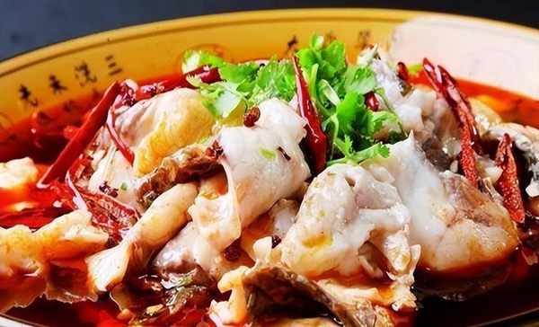 4、炒鍋裡放油,油多一點,三成熱下幹辣椒和花椒,中火炸香,豆芽放底部,魚放上面,然後連同油一起澆入魚裡,美味、鮮香的水煮魚就出爐瞭