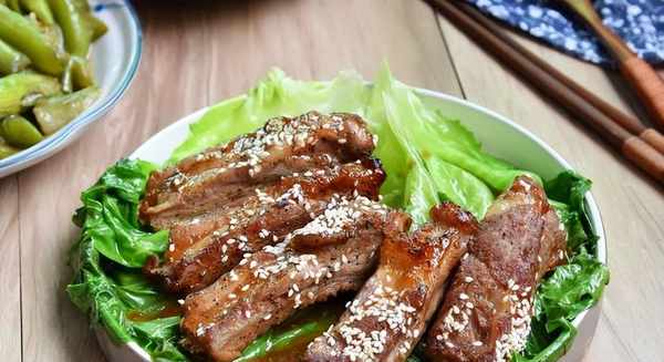 材料:排骨、料酒、黑椒汁、叉燒醬、蜂蜜、油、白芝麻
